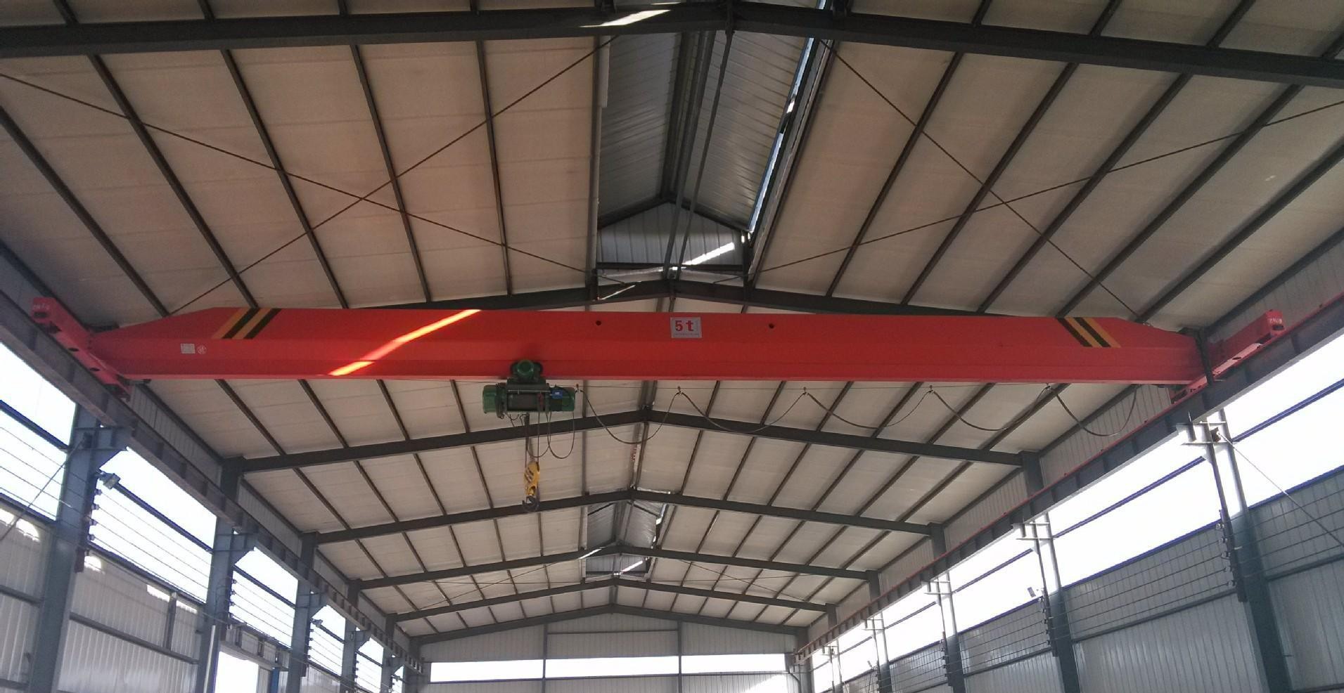 LX型電動(dòng)單梁懸掛起重機(jī)與CD1、MD1型電動(dòng)葫蘆配套使用,構(gòu)成有軌運(yùn)行的單梁起重機(jī)。該懸掛起重機(jī)的運(yùn)行軌道使用用工字鋼,主梁兩端懸掛于工字鋼下方前后運(yùn)行,是小噸位起重設(shè)備。LX型單梁懸掛起重機(jī)多用于機(jī)械制造、裝配車間及倉(cāng)庫(kù)等場(chǎng)所