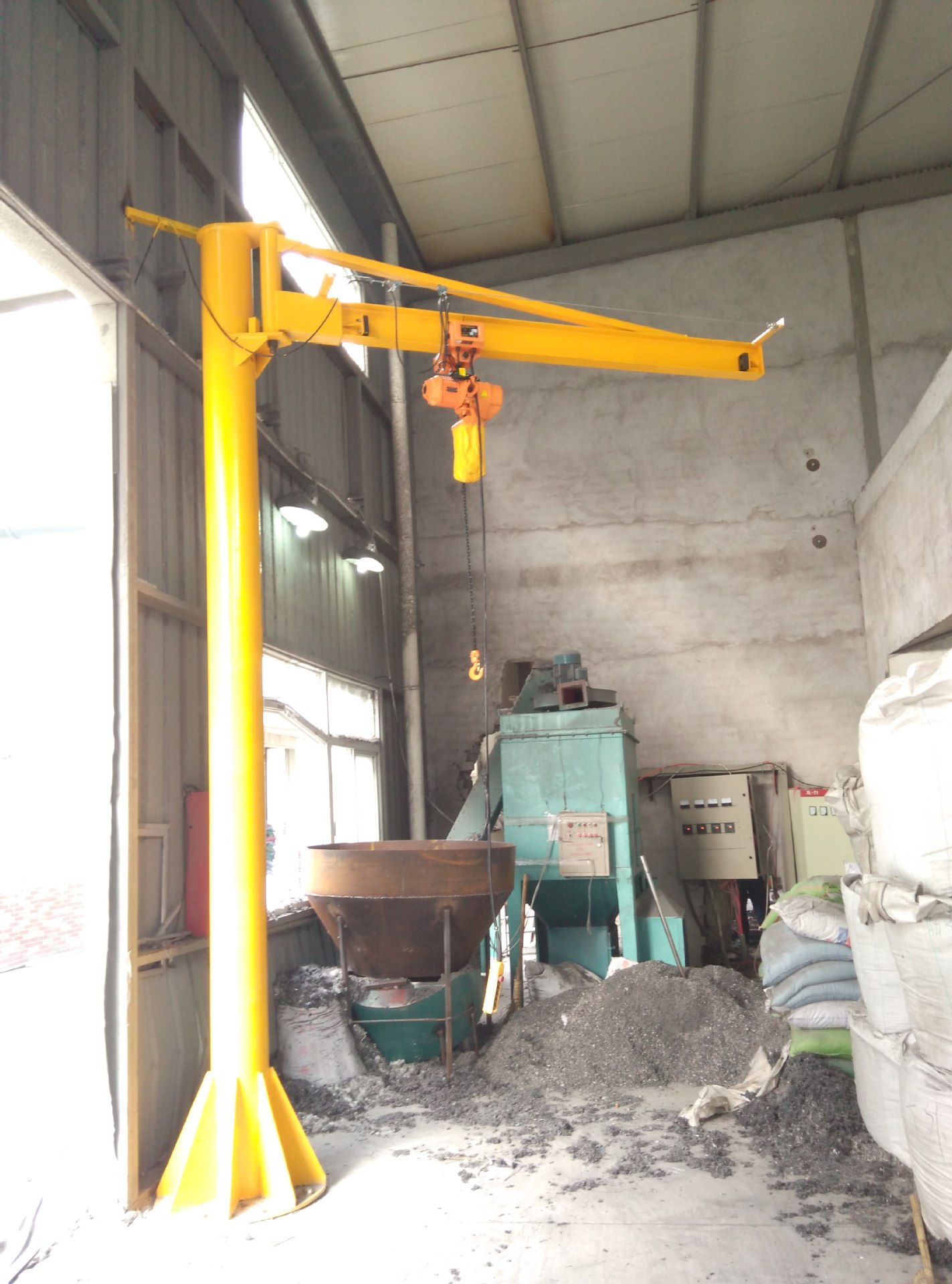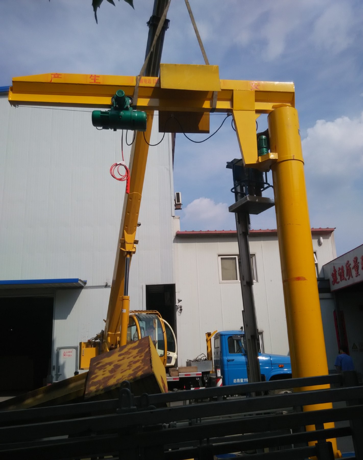 起升、運(yùn)行和回轉(zhuǎn)均為電動,結(jié)構(gòu)緊湊,適用于低凈空,回轉(zhuǎn)角度360°或≤270°電動定柱式起重機(jī),設(shè)計符合中國機(jī)械行業(yè)標(biāo)準(zhǔn),工作強(qiáng)度為中型,滿足JB/T 8906-1999的要求。起重機(jī)旋臂為工字鋼結(jié)構(gòu),經(jīng)久耐用;結(jié)構(gòu)尺寸小,特別有利于提高吊鉤行程。