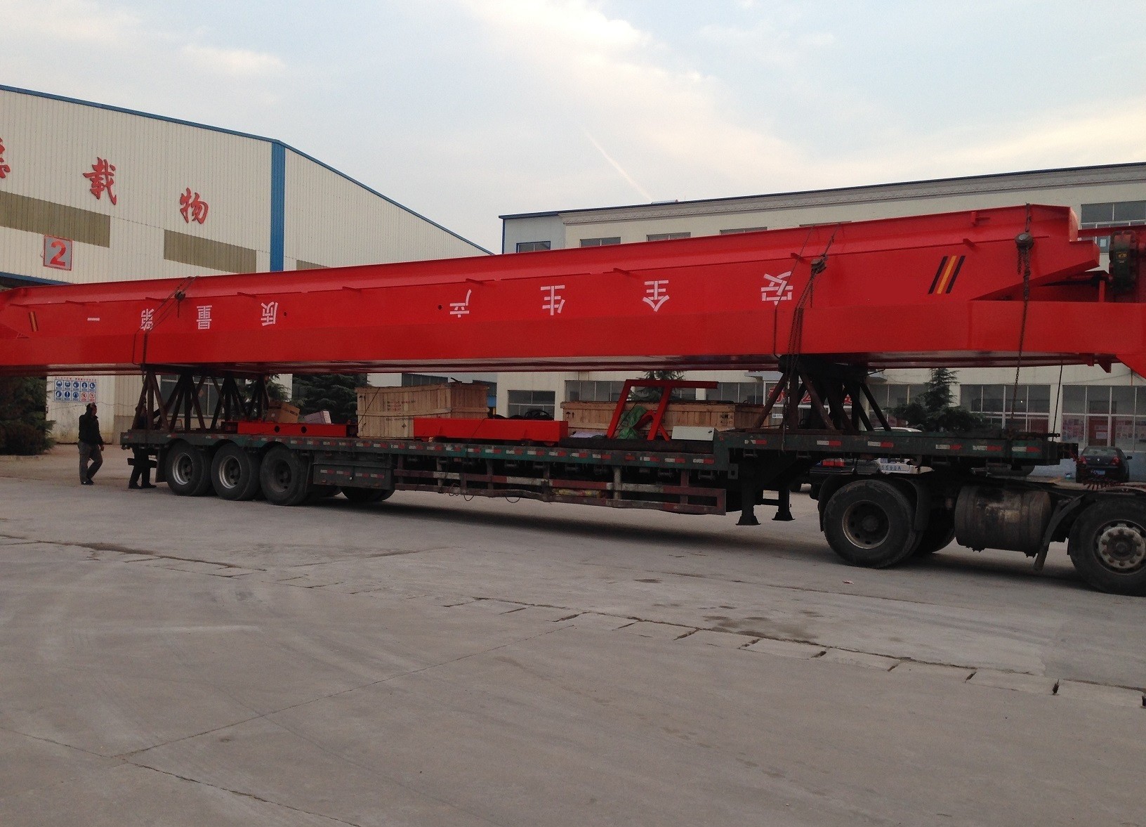 是橋架兩端通過運(yùn)行裝置直接支撐在高架軌道上的橋架型起重機(jī)。它由橋架(包括主梁和端梁)、起重小車、大車運(yùn)行機(jī)構(gòu)和電氣控制系統(tǒng)等部分組成。起重小車上裝有起升機(jī)構(gòu)和小車運(yùn)行機(jī)構(gòu)在橋架主梁上沿小車軌道橫向運(yùn)行;起重機(jī)沿廠房或露天貨場(chǎng)的高架軌道縱向運(yùn)行,其掛梁方向分為與主梁平行和與主梁垂直兩種,并在掛梁下方裝有電磁吸盤,通過電磁吸盤完成物料搬運(yùn)工作。