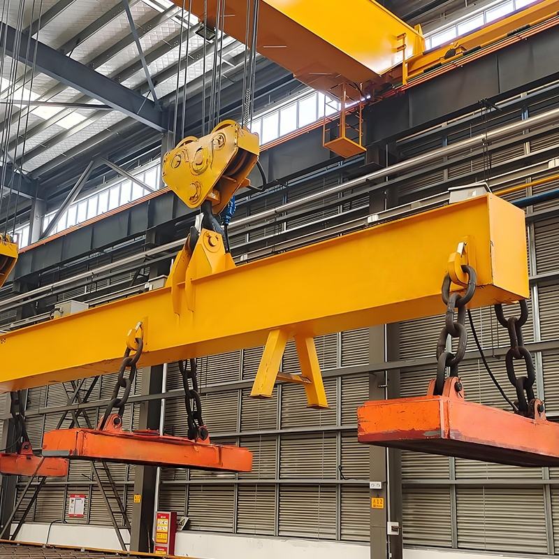適用干冶金工廠在室內(nèi)或露天的固定跨間較繁重地裝卸及搬運(yùn)具有磁性的黑色金屬制品與材料(如鋼錠、型鋼、生鐵塊)在機(jī)械廠。庫(kù)房中也常有來搬運(yùn)鋼料、鐵塊、廢鐵、廢鋼、鐵屑等物料。