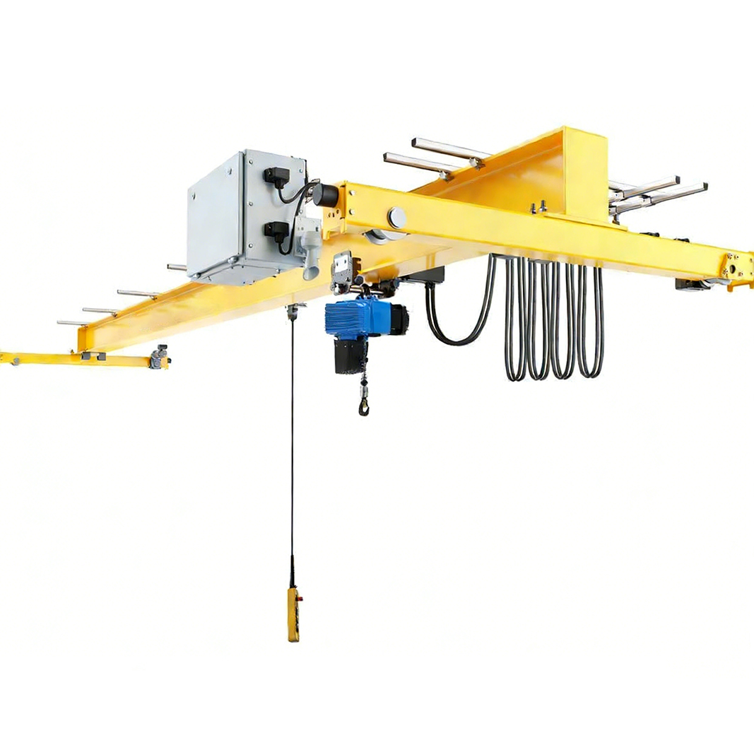 電動葫蘆沿主梁下翼緣軌道橫向移動,實現(xiàn)物料精準定位