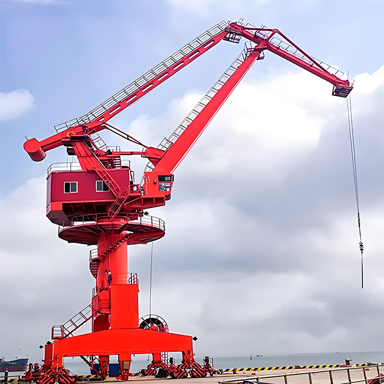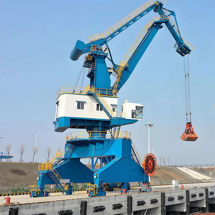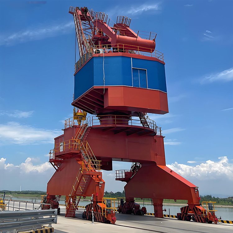 裝卸用門座起重機:這是港口和大型露天堆場最常見的類型。主要用于裝卸件雜貨、散貨(煤炭、礦石)或集裝箱。其設計強調(diào)工作速度快、裝卸效率高。通過更換吊具(如換用集裝箱專用吊具或抓斗),可靈活適應不同貨種,常被稱為“多用途門機”。
