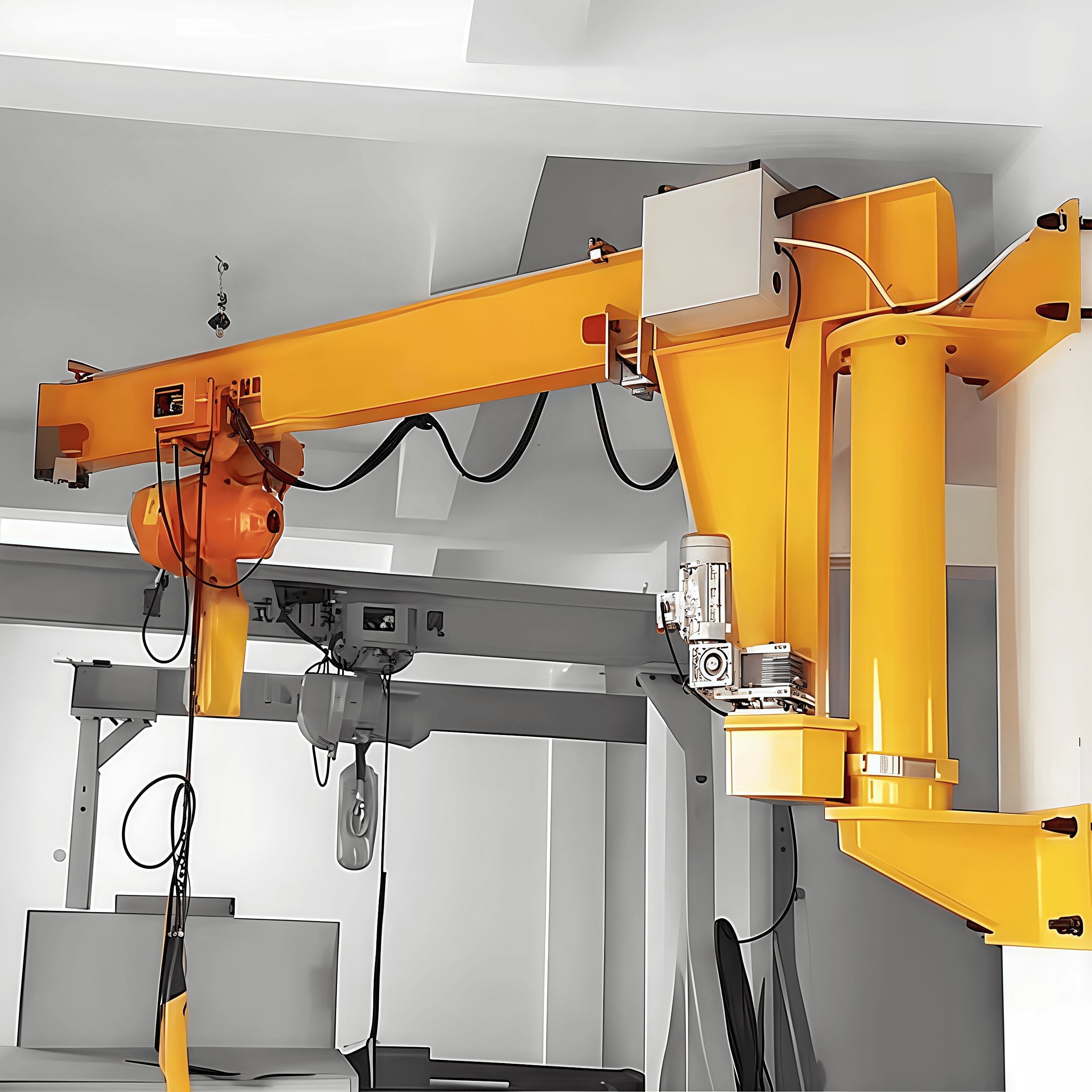 懸臂(旋臂):這是主要的承力和作業(yè)部件,通常采用空心型鋼或工字鋼制成,自重輕且跨度大。懸臂末端安裝有電動或手動葫蘆。