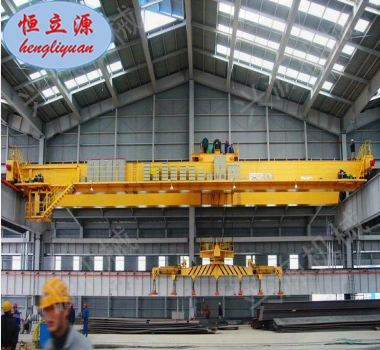 通過(guò)電磁吸盤(pán)完成物料搬運(yùn)工作,該起重機(jī)適用于鋼廠倉(cāng)庫(kù),用作搬運(yùn)鋼板、碎料等。? ? ? ? ?