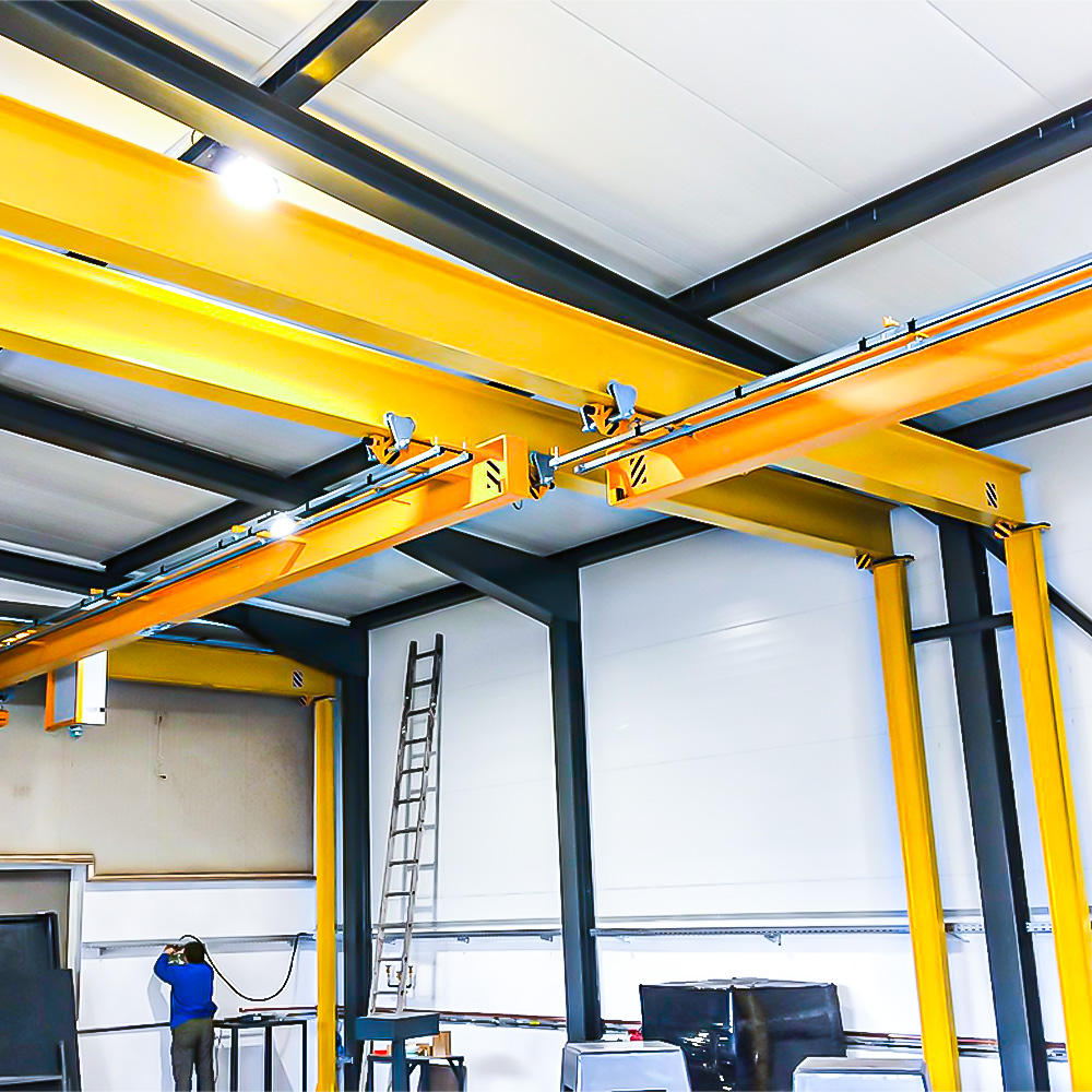 整機(jī)采用懸掛式固定方式,無需地面基礎(chǔ)建設(shè),不占用地面通道與作業(yè)空間,適配層高受限、地面設(shè)備密集的生產(chǎn)場(chǎng)景。主梁緊貼廠房頂部安裝,最大化釋放地面與中層空間,為生產(chǎn)布局與倉(cāng)儲(chǔ)規(guī)劃提供更多靈活度。