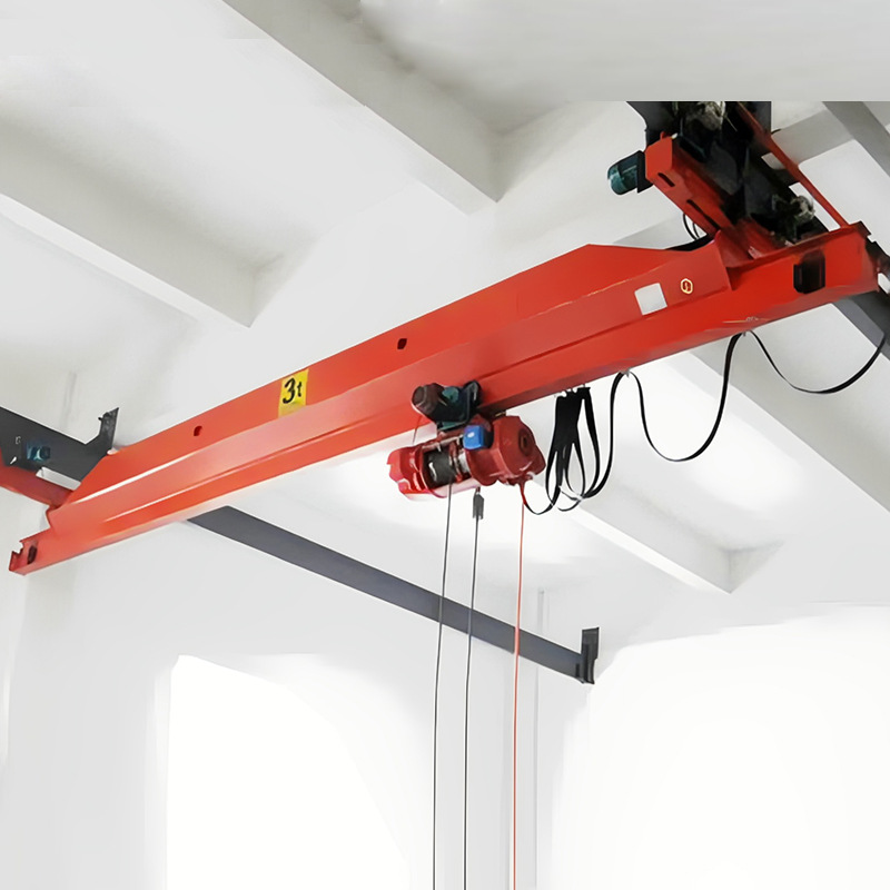 懸掛裝置:通過(guò)車輪組直接懸掛在廠房頂部的工字鋼軌道上,車輪與軌道間隙 3-5mm,確保運(yùn)行平穩(wěn)